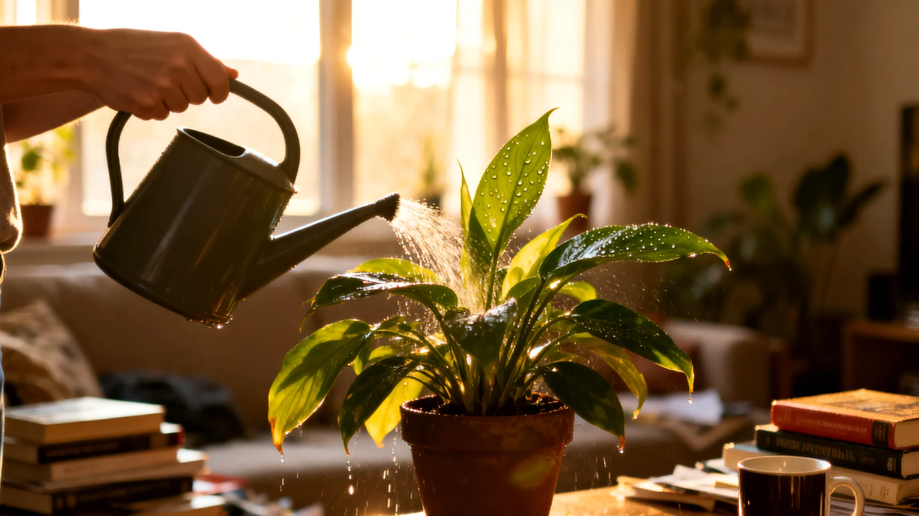 - Die Gießkanne am Vorabend füllen. Das Wasser gleicht sich langsam der Raumtemperatur an, was den Wurzeln entgegenkommt und physiologischen Stress reduziert.
